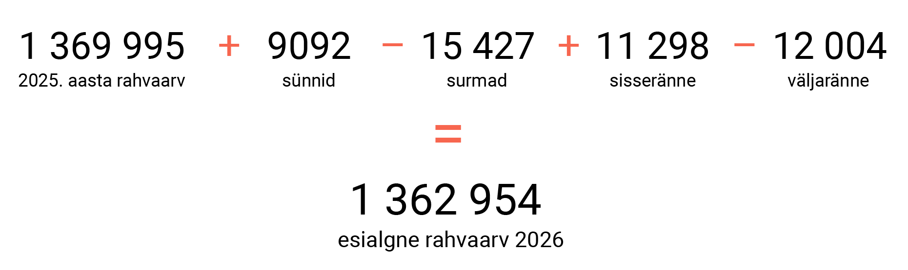 Taasavaldame 2024. aasta jaanuaris ilmunud loo, kus kirjutasime, mille peale kulub vahepealne aeg ja millist infot saame täpsustatud rahvaarvuga. 2024. aasta rahvastikuandmed asendasime artiklis 2026. aasta rahvastikuandmetega.