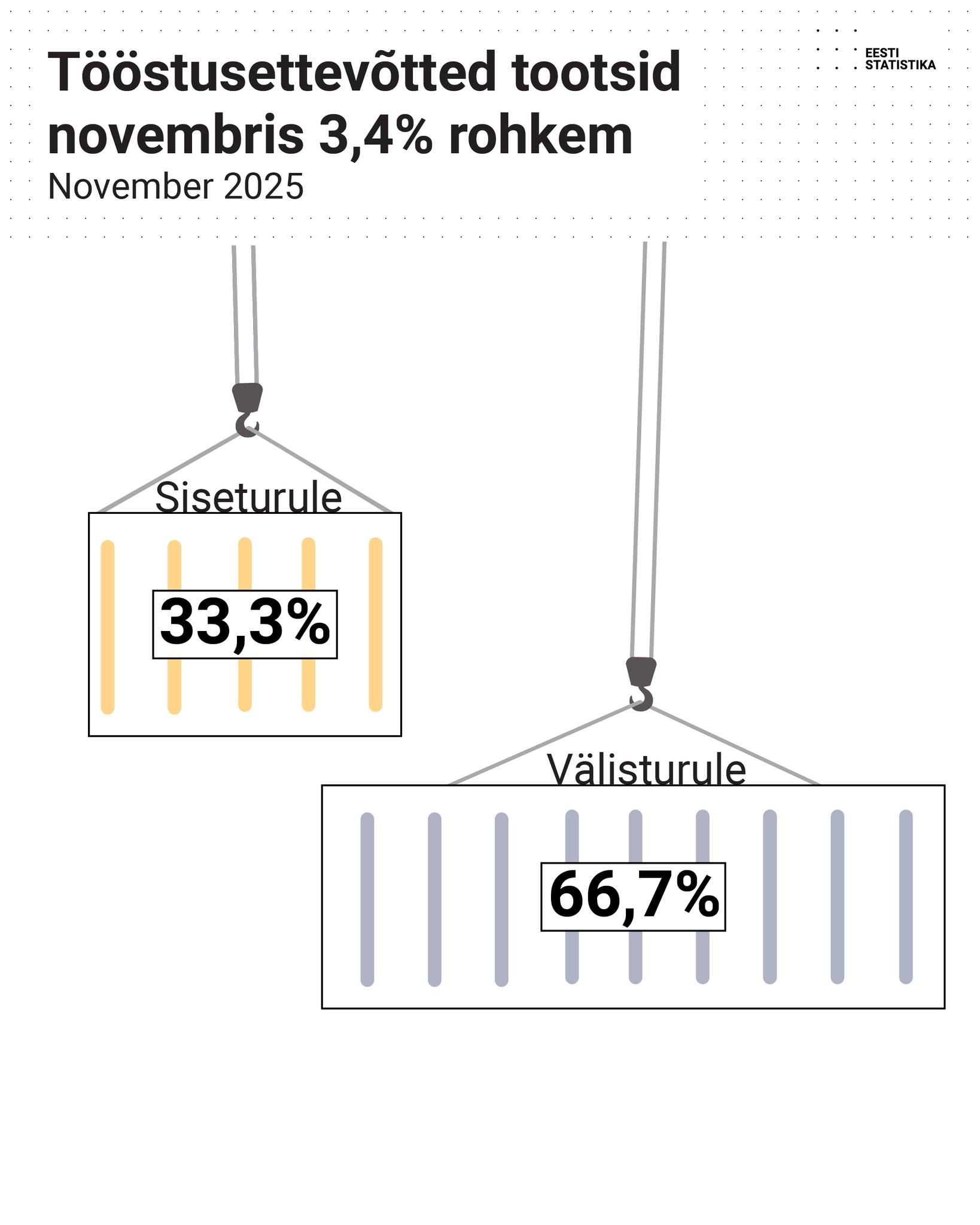 Pärast kahte kuud vähenemist hakkas novembris töötleva tööstuse toodang taas kasvama. Suure panuse selleks andis mootorsõidukite, haagiste ja poolhaagiste tootmine, mis kasvas suuresti kaitsetööstuse tõttu enam kui poole võrra. Samuti suurenes märkimisväärselt muude transpordivahendite tootmine. Tööstuse kolmest sektorist kasvas toodang mäetööstuses ja töötlevas tööstuses, kuid kahanes energeetikas. Kogu töötleva tööstuse toodangust müüdi 2025. aasta novembris 66,7% välisturule.