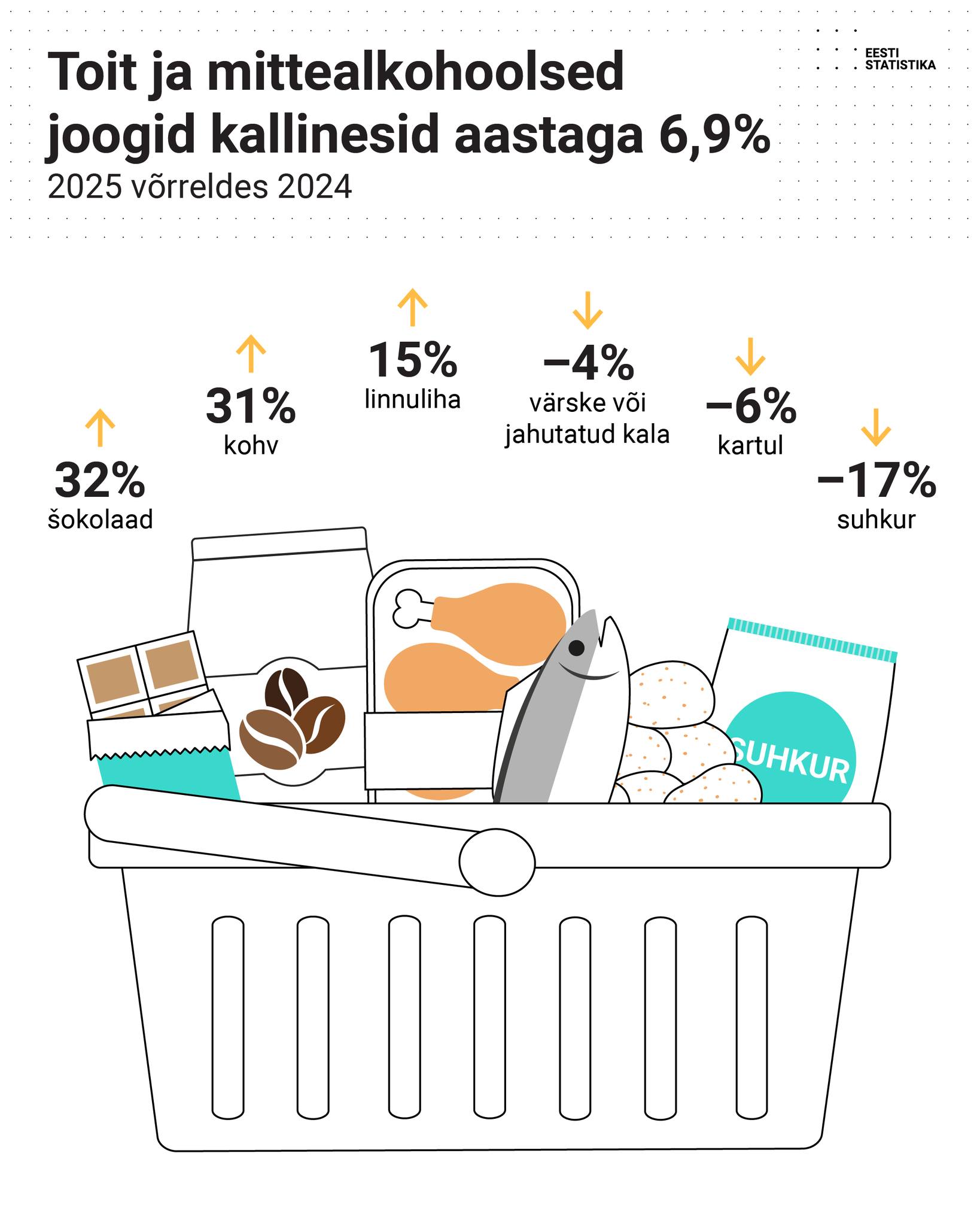 Tarbijahinnaindeksi suurimaks mõjutajaks 2025. aastal oli toidu ja mittealkohoolsete jookide hinnatõus. Toit ja mittealkohoolsed joogid kallinesid aastaga 6,9%. Aasta alguses kehtima hakanud automaks tõstis transpordiindeksit võrreldes eelmise aasta keskmisega. Tervishoiuteenuste hinnakirja uuendamine aprillis kergitas omakorda tervishoiuindeksit. Riietuse ja jalatsite hinnad aga langesid.