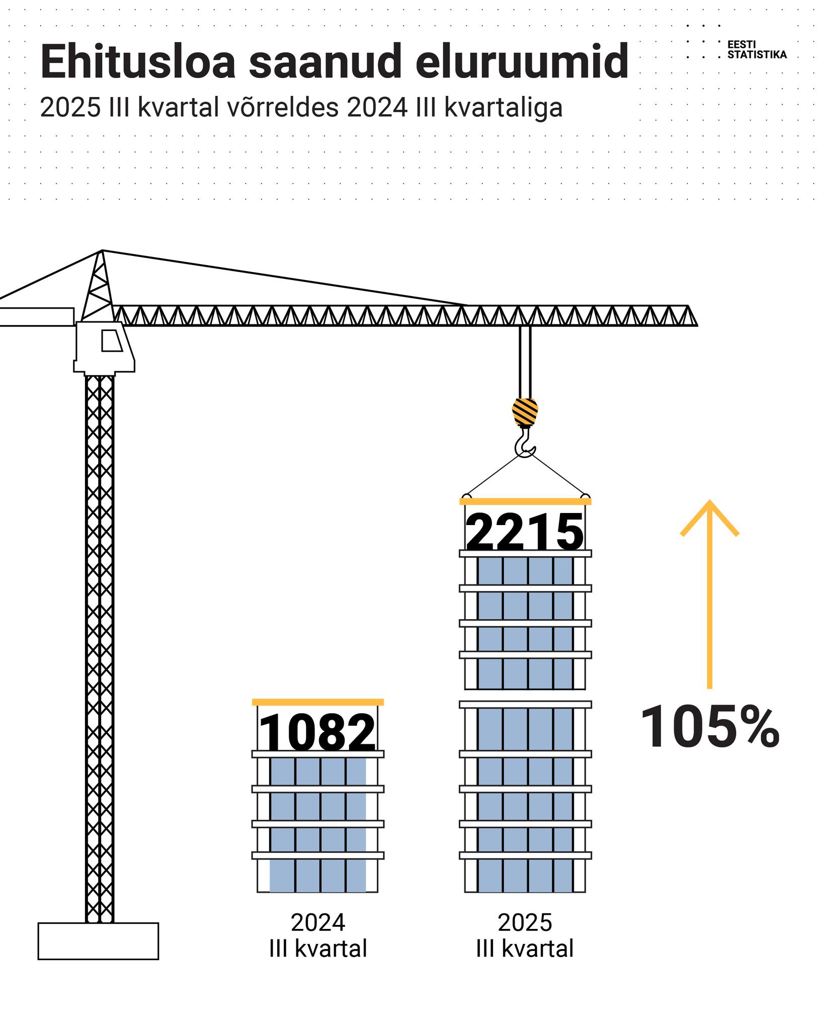 Kohaliku ehitusturu väikese kasvu taga on eelkõige suurenenud mahud hoonete uusehituses ning rajatiste remondi- ja rekonstrueerimistöödes. Ehitusluba väljastati kolmandas kvartalis 2215 eluruumi ehitamiseks, mida on kaks korda rohkem kui aasta varem samal ajal.